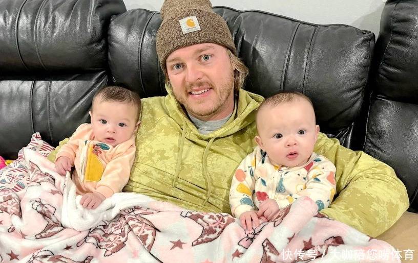 另外一张相片上,丈夫带着双胞胎孩子出镜。看相片的布景,应该是在家里的客厅里。丈夫靠在沙发上,戴着棕色的帽子,穿戴黄色的卫衣。一双双胞胎的孩子,在丈夫的双方。他一只手抱着一个。孩子对着镜头,两只眼睛圆圆的,止境可人!很彰着,她们一家东说念主止境的幸福!