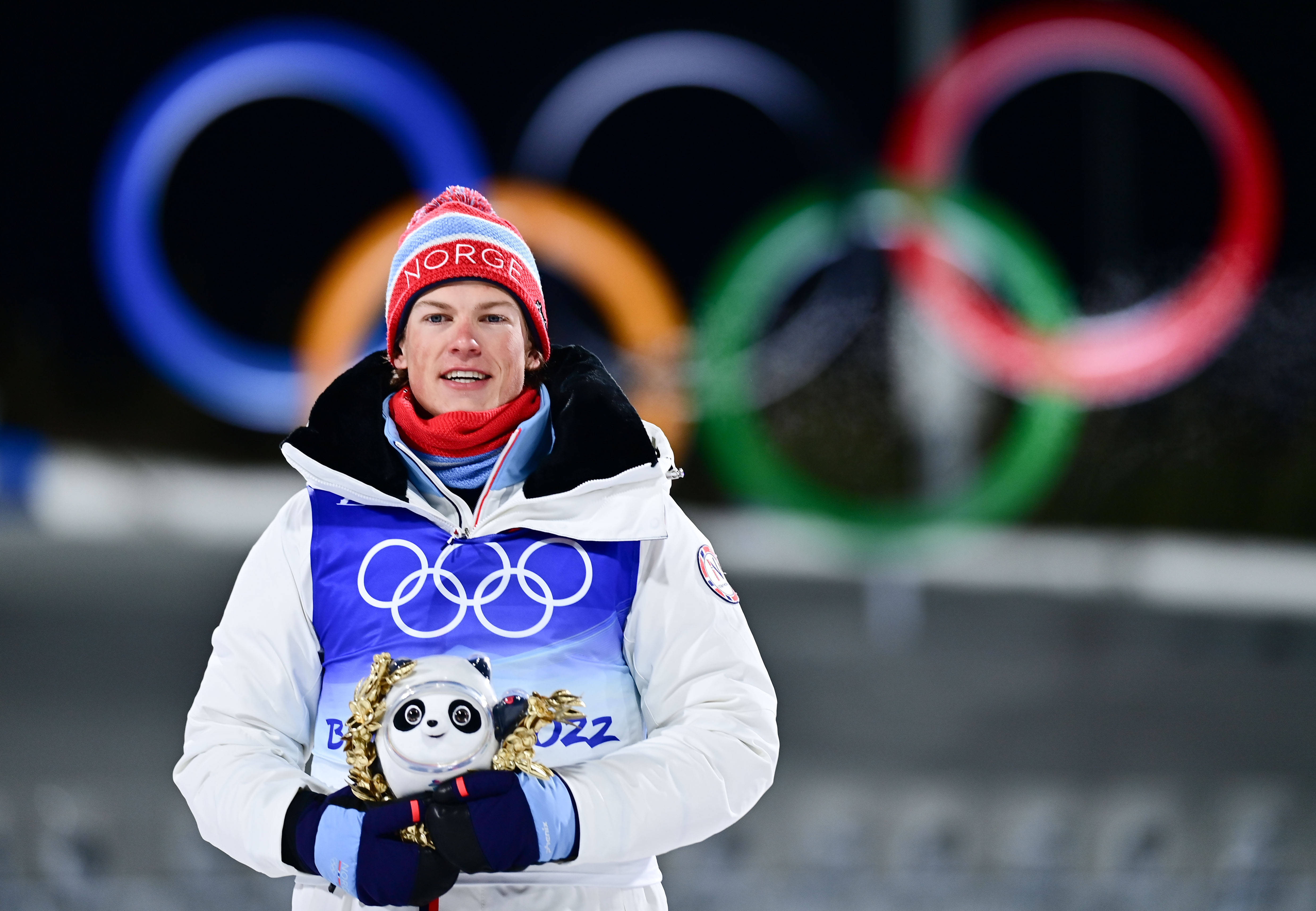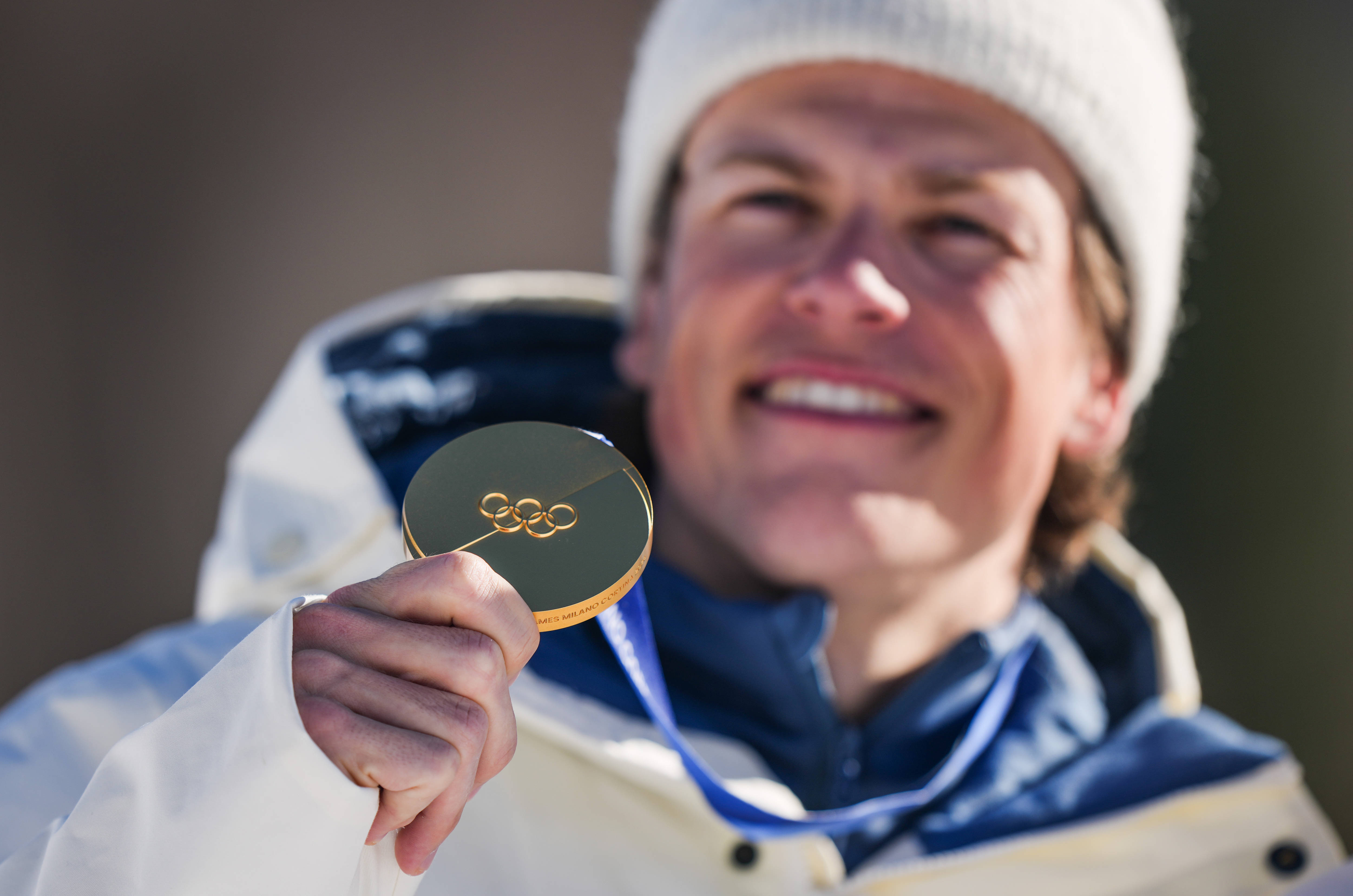2月10日,冠军挪威选手克莱博在米兰-科尔蒂纳冬奥会越野滑雪男人个东谈主短距离(传统技能)受奖庆典上。新华社记者 彭子洋 摄