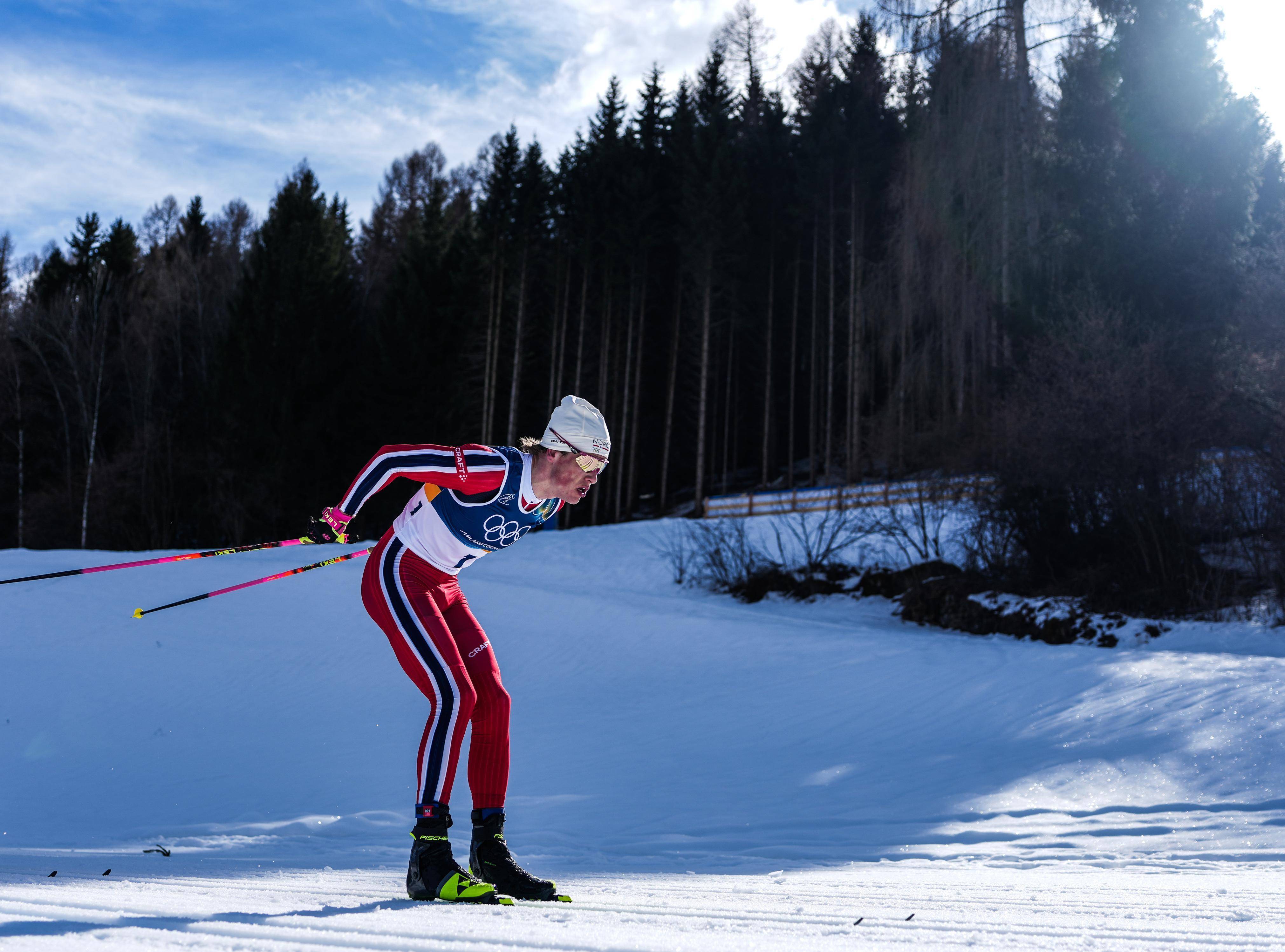 2月8日,冠军挪威选手克莱博在米兰-科尔蒂纳冬奥会越野滑雪男人双追赶(10公里传统技能+10公里目田技能)比赛中。新华社记者 彭子洋 摄